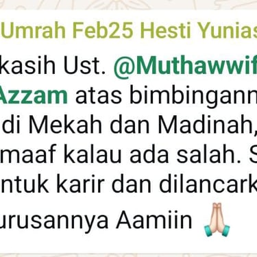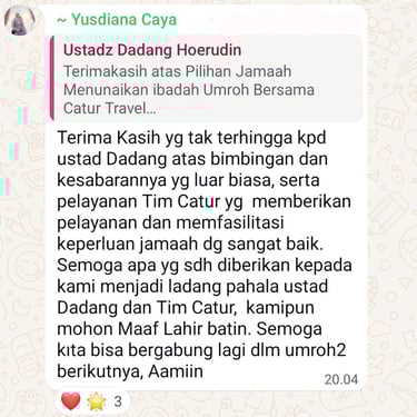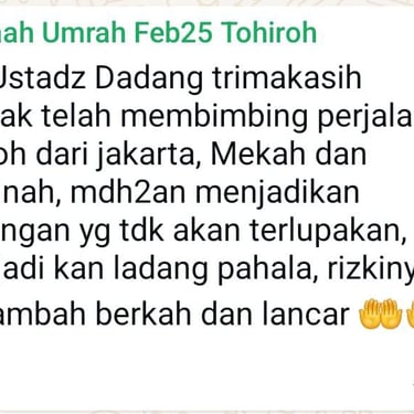 ✔ Tim Pembimbing Profesional: Ustadz/ustadzah berpengalaman dalam bimbingan manasik dan ibadah.